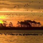 As the sun dips below the horizon, visitors can enjoy the captivating sunset experience offered by the Sunset Skiff Boat Rental in Chincoteague Island, VA.