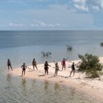 They’re transported by boat to a secluded, pristine stretch of white sand along the Amazon River.