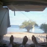 Savoring a wild picnic on a desert beach and witnessing a breathtaking sunset.