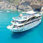 During the 7-8 hour tour, guests can also enjoy swimming, sunbathing, and snorkeling, as well as a delicious lunch served on board.