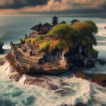 Atop the rocky outcrop, the iconic Tanah Lot Temple serves as a breathtaking backdrop for the Kecak and Fire Dance performances.