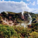 Travelers marvel at the vibrant, colorful rock formations and the awe-inspiring Furnas do Enxofre, a hidden lava tube.