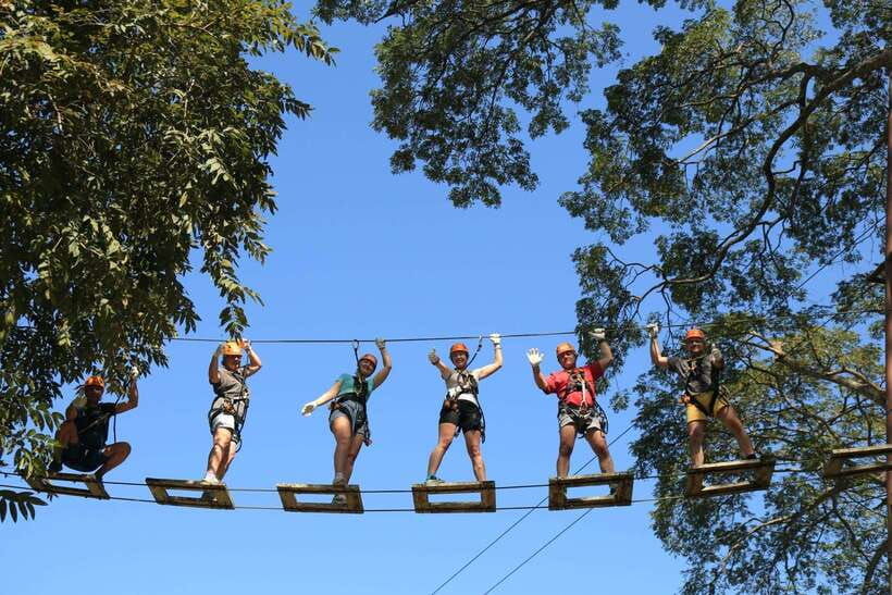 Soar over the jungle canopy and experience the thrill of ziplining through lush greenery with 10 or 24 challenges.