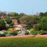 Visitors to the Nokonoshima Island Park are captivated by the vibrant natural landscapes. Lush greenery and blooming flowers line the trails, creating a serene atmosphere.