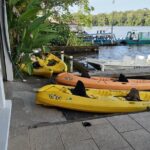 The meeting point for the day hike is 175 meters south of the main dock, on the left side by the river, at the Tortuguero Adventures office.