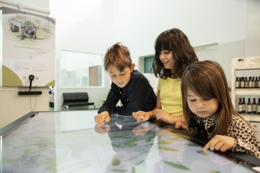 The tour features interactive panels, virtual reality stations, and multitouch lecterns that immerse guests in the olive oil world. Guests can explore production sites, meet millers, and observe machinery through these engaging installations.