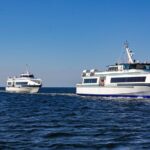 Passengers board the largest passenger ferries in Ireland, where they can enjoy bar service and refreshments during the scenic cruise.