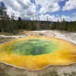 Yellowstone’s serene lake and mesmerizing West Thumb Geyser Basin beckon explorers on the journey through the park’s highlights.