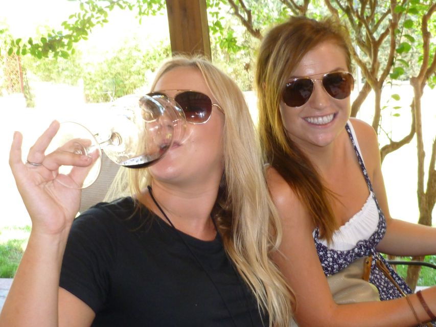 The tour provides roundtrip transportation by minivan or bus, an English-speaking tour leader, and a guided winery visit with multiple tastings.