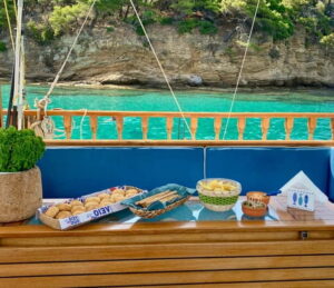 The final stop on the cruise is Tsougris Island, a tropical paradise that captivates visitors with its crystal-clear waters and serene ambiance. Upon arrival, guests can unwind on the island’s private beaches, swim in the refreshing azure seas, and bask in the sun’s warmth. The island’s natural charm and tranquility provide the perfect setting for a relaxing conclusion to the day’s adventures.