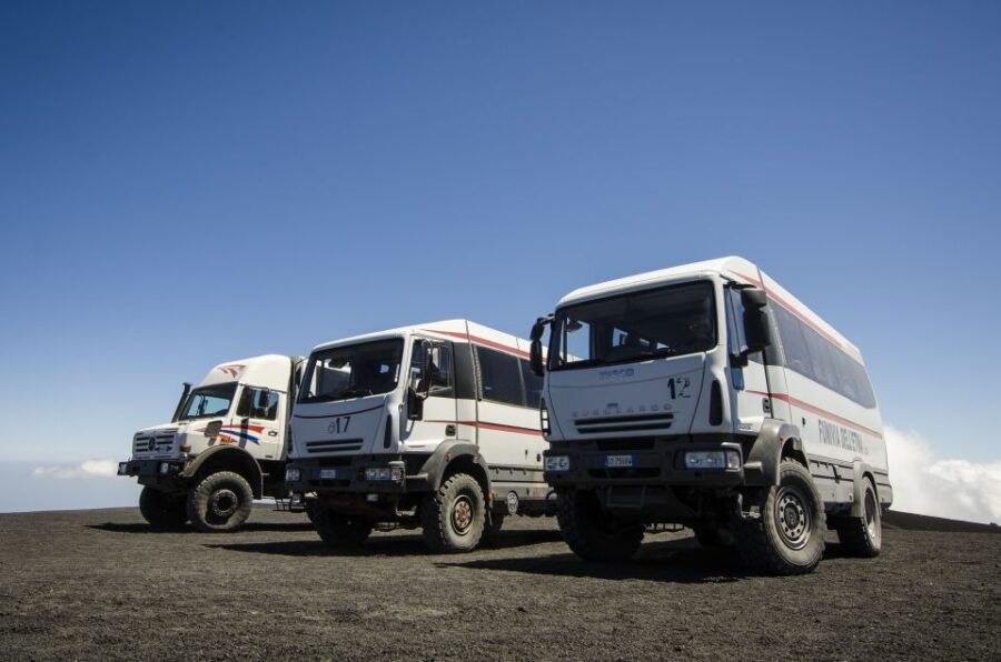 - The tour includes a scenic bus ride, an optional Circumetnea train ride, and a guided ascent to Mount Etna’s main craters via cable car and 4×4 Jeep.