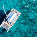 After the boat anchors in the secluded cove, guests can indulge in a selection of refreshing beverages served on board.