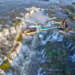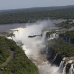 A helicopter flight over Iguassu Falls provides travelers with a breathtaking bird’s-eye view of the cascading waterfalls.