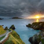 Purple Mountain’s majestic peaks rise in the distance, while Dinish Island’s verdant foliage creates a serene contrast.