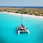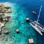 Guests board a catamaran for the trip, taking in stunning views of Curaçao along the way. Activities on the island include snorkeling with sea turtles and enjoying a barbecue lunch on the beach.