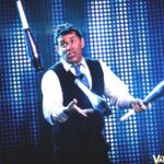 The show includes signature tricks, improvisation, and audience interaction, featuring strobe light effects and theatrical smoke.