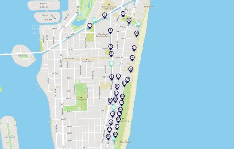 • Covers significant locations like Washington Avenue, Casa Casuarina, Soundscape Park, and Espanola Way, showcasing the area’s rich history and architecture.