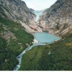 At the end of the scenic drive, the Briksdal Glacier and its accompanying lake come into view.