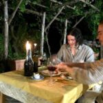 At the end of the hike, a picnic dinner awaits, featuring salami, cheeses, vegetables, pasta, and tiramisu, accompanied by the estate’s signature wine.
