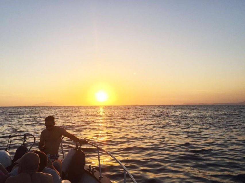 The vibrant colors of the sunset cast a warm, romantic glow over the dramatic coastline, making for postcard-worthy shots. Passengers can frame the scenic views from the boat or opt to swim in the tranquil bays for a closer look.