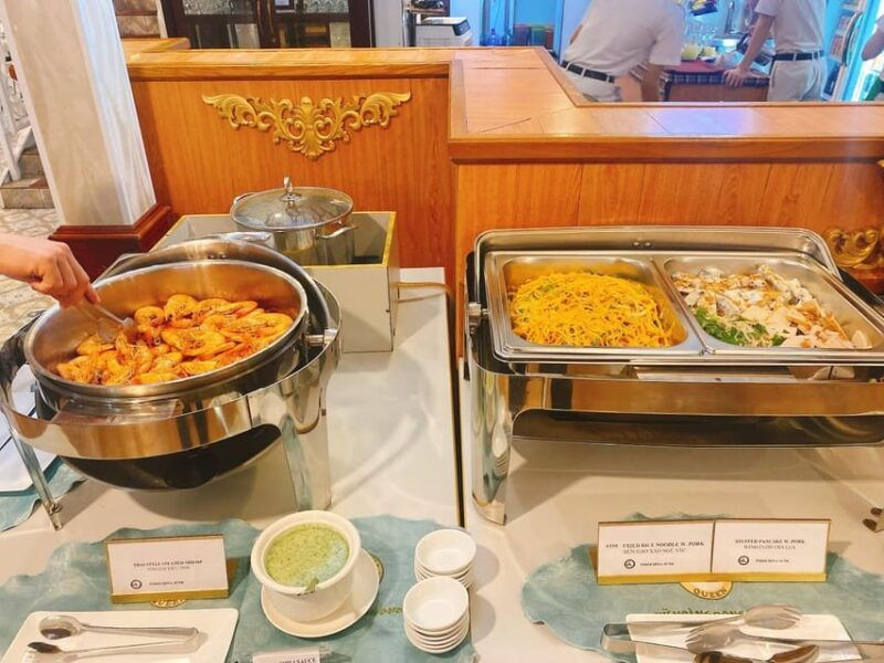 The dinner menu is a pre-set buffet. Customization options aren’t available, but the buffet offers a variety of Vietnamese dishes to accommodate different dietary needs and preferences. Guests can’t bring their own food or drinks on the cruise.