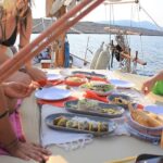 You’ll find that food and beverages are well-covered, with three drinks per person included, along with soft drinks, cocktails, and plenty of bottled water. The lunch—a Greek-style grilled dish—is also part of the package, along with snacks and coffee or tea. The use of snorkeling equipment is included, which is great for exploring the waters at each stop.