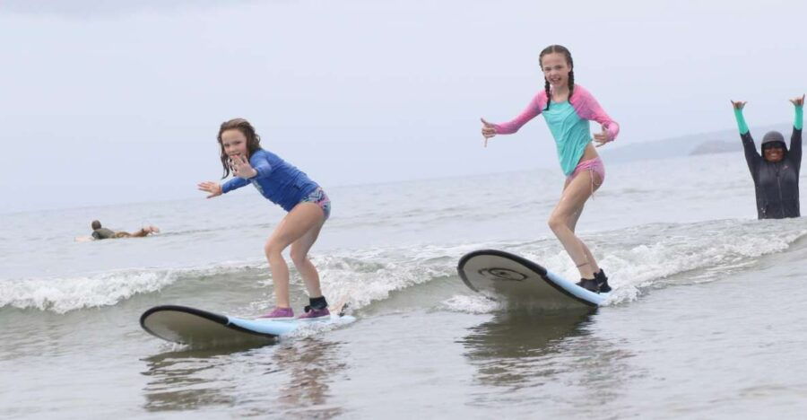 Semi-private surf lessons require a minimum of 2 people, ensuring a personalized experience with a private instructor catering to your small group’s needs.