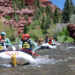 - Guests enjoy breathtaking views of red rock walls and lush pine trees while navigating exhilarating rapids.