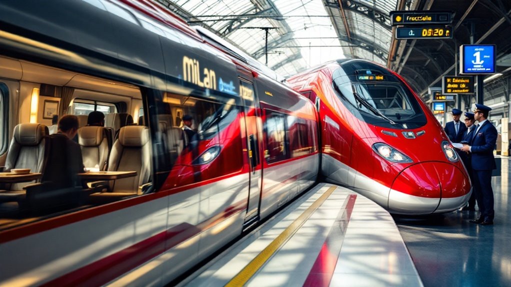 You’ll find their fastest trains, like the Frecciarossa, reaching speeds up to 300 km/h, connecting major cities from Turin to Salerno.
